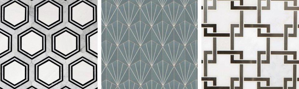 5 x 5 hexagon random mix in grey, light grey and super white 5... Greek key square mosaic border 3. Art deco tiles featured from left to right 1. That's because it's easy to create bold patterns and contrasts... The year 2021 collection is here: